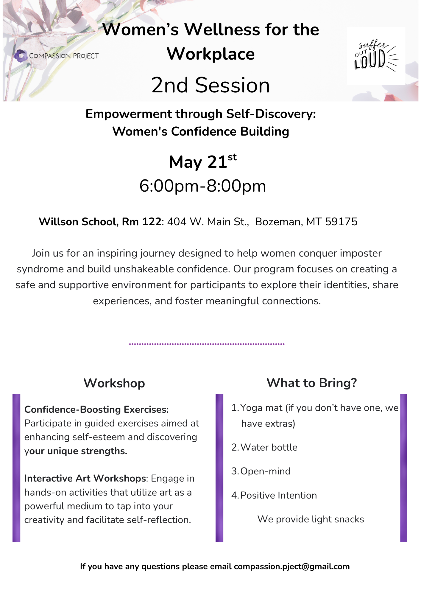 Compassion Project is a Gallatin Valley non-profit 501(c)(3). We specializes in teaching and spreading compassion through mindfulness and art. We are hosting a FREE event at the Bozeman Public Library on April 12th from 11:00am-1:00pm. This is geared towards children and their guardians from ages 4-8.